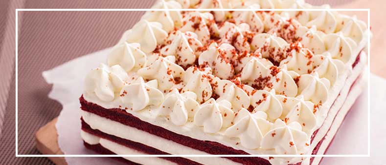 红色奢华眩目、白色经典大气,两者相配,诠释了优雅与尊贵。红丝绒低密度的蛋糕饼胚造就了她格外蓬松的口感,如天鹅绒一般丝滑细腻,轻抿一口,浓郁清甜,让人仿佛身处王室的后花园,回味而享受。