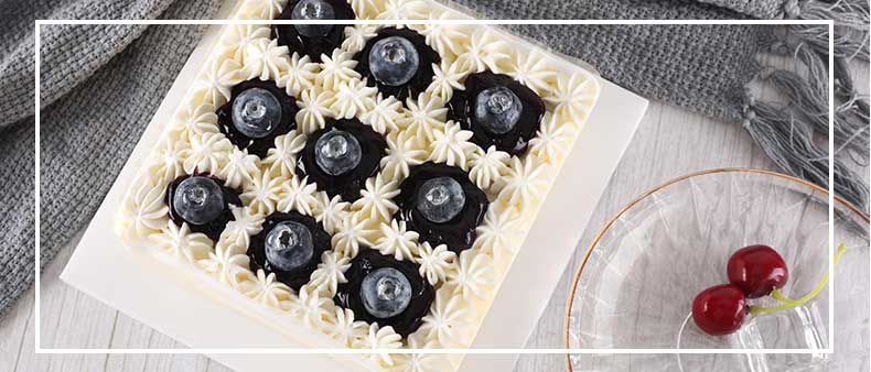缓缓淋在蛋糕上的蓝莓果酱,填满奶油起伏之间的空白,好似从阿尔卑斯山麓流淌而来的莱茵河,流过半个欧洲。落在上面的颗颗蓝莓,宛如河水孕育的点点小镇。蓝莓的清爽和奶油的香甜完美融合,完成了一次从视觉、味觉到质感的完美构建。