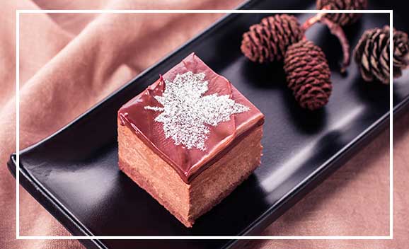 如果你是一个巧克力控,你一定不能错过它。巧克力淋面 黑巧克力慕斯 巧克力戚风胚的完美组合,让你一秒就陷入巧克力的香浓诱惑。角落里的枫叶仿佛带来了慕尼黑的浪漫与清逸,巧克力带来的浓郁在加入了白兰地的衬托下,愈发香醇,让挑剔的味觉沉醉其中。